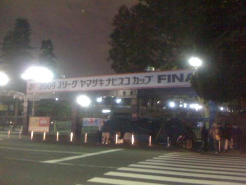 どっかのブログに前夜のスタジアムに行くとアガる!とあったので、仕事帰りに国立に寄ってみました。(いや仕事に身が入んないからとっとと定時にあがって時間を持て余したんで。帰り道だし。リストラ上等ですわ)